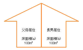 (2)床面積2分の1以上居住要件 → 家屋全体の床面積のうち受贈者(長男)の居住部分の床面積の占める割合で判定します